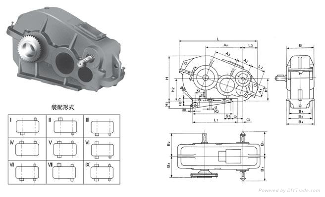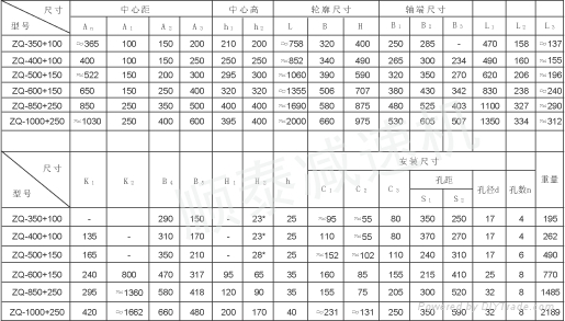 ZQ型大速比減速器,其輸入、輸出軸的位置和安裝尺寸盡量與ZQ型保持不變、箱體部分面做成傾斜,增加的高速級在上方。有ZQ350+100、ZQ400+100齒輪減速機、ZQ500+150、ZQ650+150大速比減速機、ZQ850+250大速比減速器和ZQ1000+250齒輪減速機六個規(guī)格.
