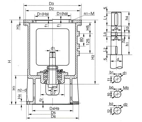 減速機輸出軸徑d0 減速機類別代號 D1 D2 D3 n1-M f1