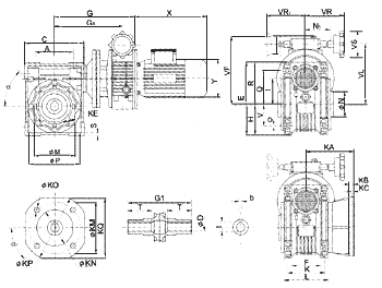 | Size | C | E | F | G | G1 | G3 | H | I | KA | KB | KP | KQ | L | P | R | VF | VL | VS | VR | VR1 | ||||||||